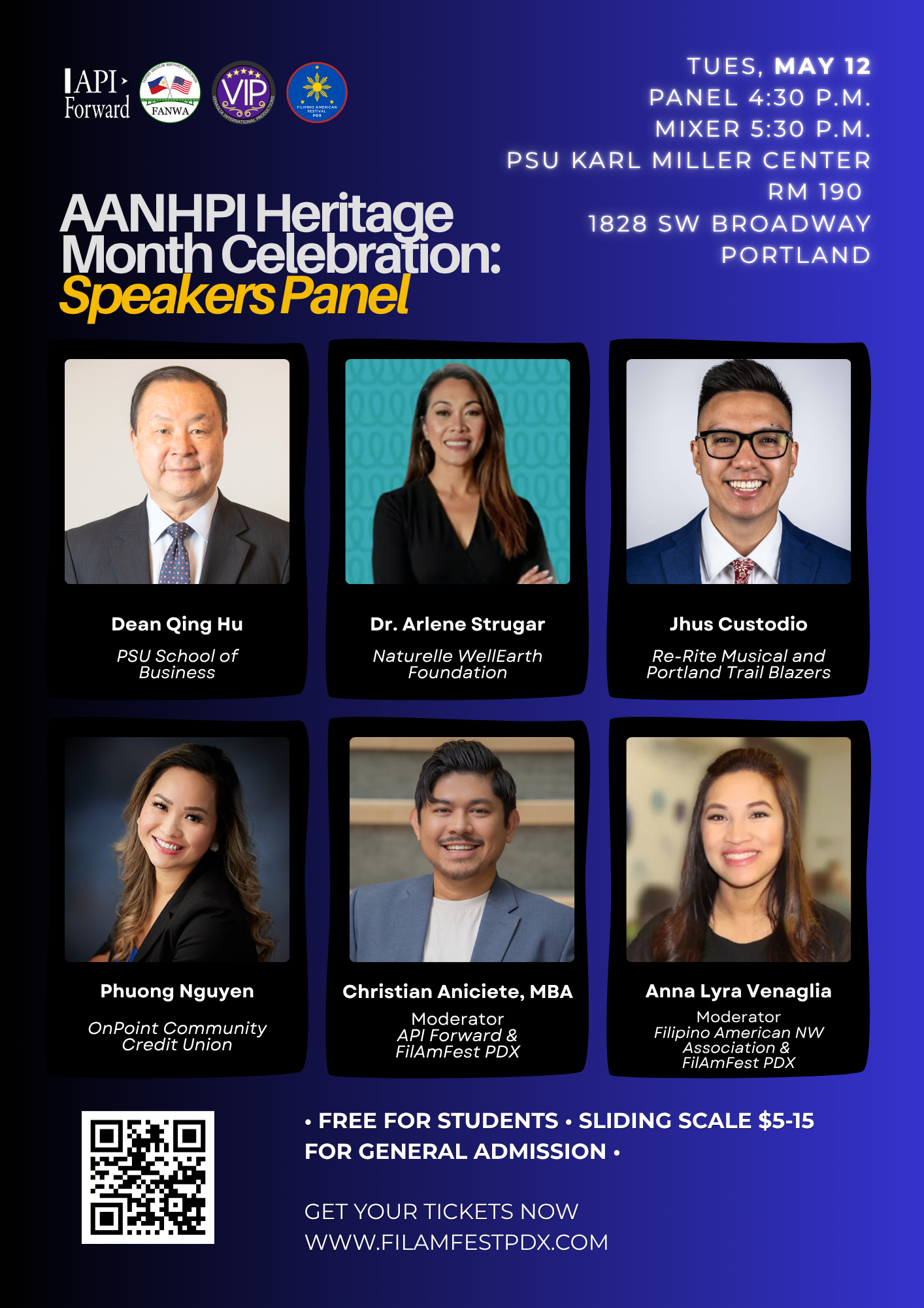 Moderated by Christian Aniciete and Anna Lyra Venaglia, this year’s panel will feature distinguished AANHPI leaders: